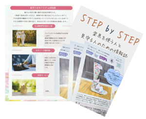 暮らしのための補装具情報誌「STEP by STEPs」は多くの方に装具の正しい情報を提供するため、フリーペーパーとして紙版を無償でお送りしています。ご購読希望の方、施設などに設置いただける企業様は下のボタンからご登録よろしくお願いいたします。