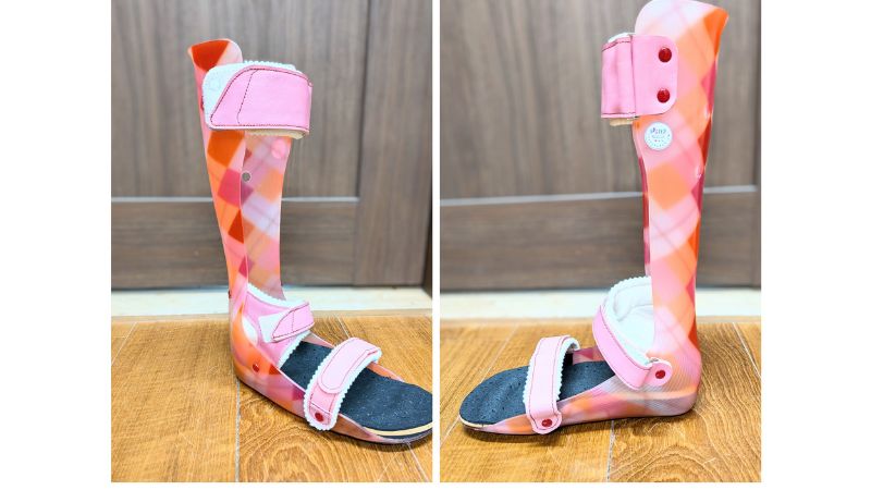前の装具は足首の角度が強くついていることで、歩行時につま先が浮いてしまい、不安定感を感じていました。