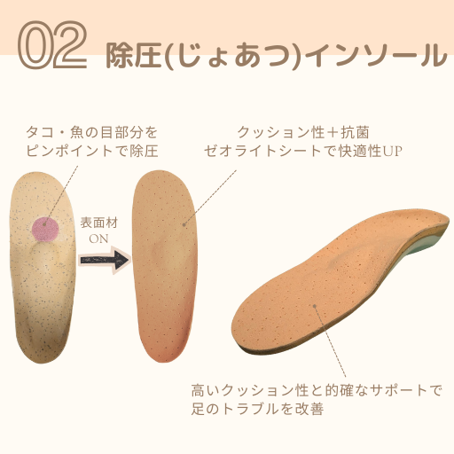 もうひとつは足裏のタコや魚の目の改善を重視した「除圧インソール」