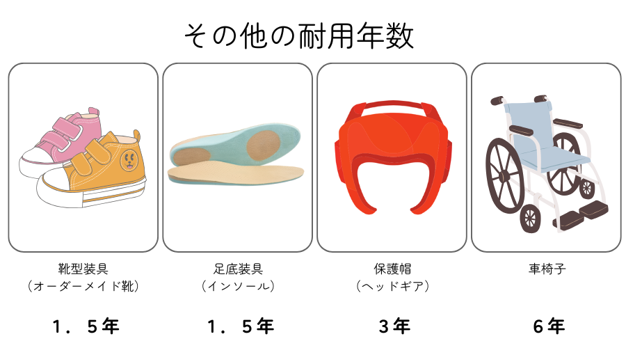 子供の場合、成長によって装具が合わなくなるので耐用年数は年齢別に設定されています。